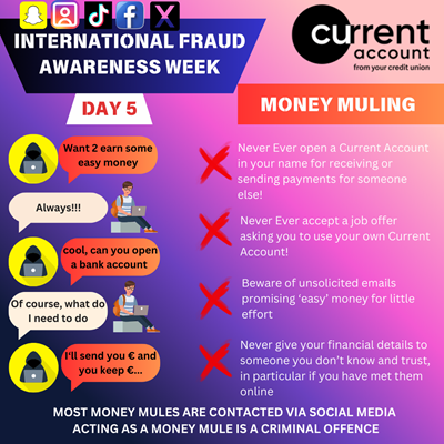 IFAW5: NEVER EVER agree to open a Current Account in your own name for the purpose of receiving incoming or transferring payments on behalf of someone else