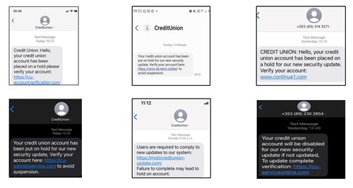 - Pre-recorded messages stating to be from your credit union, bank, Revenue or Garda. Professional bodies will never use pre-recorded messages to advise you of something as serious as suspicious activity on your account.