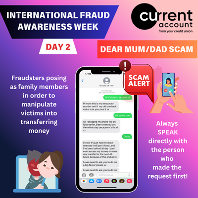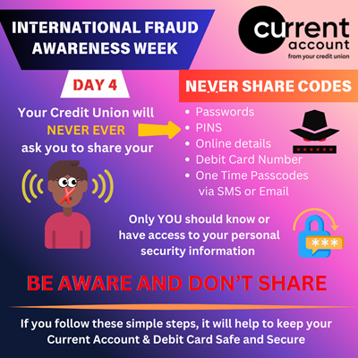 IFAW3: Your Credit Union will NEVER send Texts with links requesting you disclose personal details or share PINs/Passwords for your debit card or online banking
