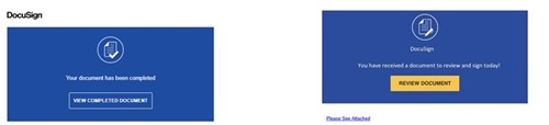 This particular scam asks users to click on a link in a mail similar to the below examples to review or complete DocuSign documents.
