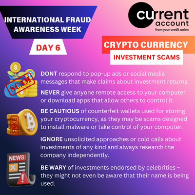 IFAW6: NEVER respond to unsolicited calls, emails pop-up ads or social media messages that make claims about investment returns or Crypto currency deals
